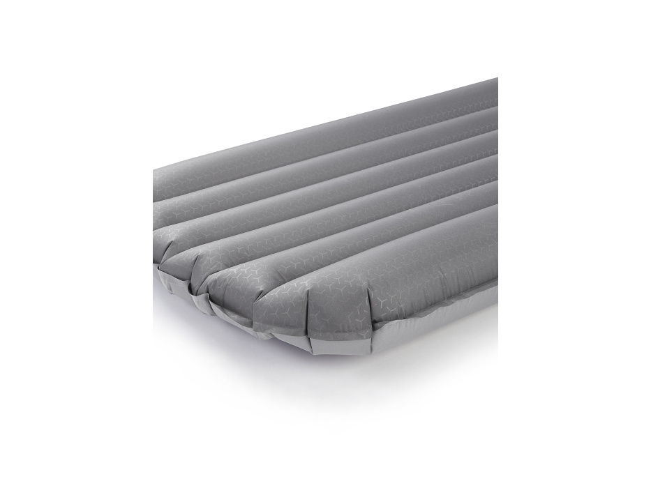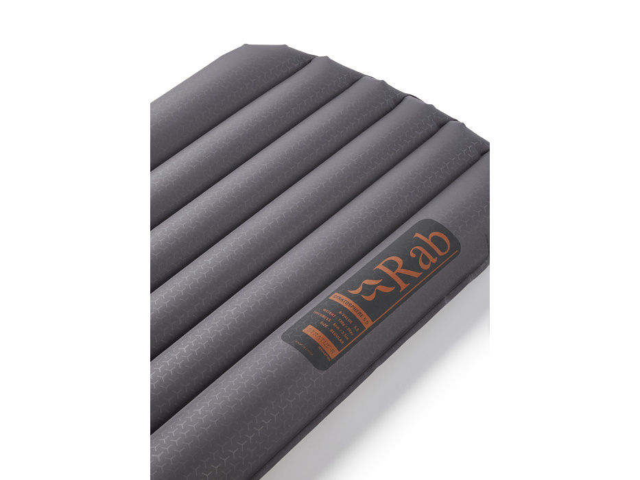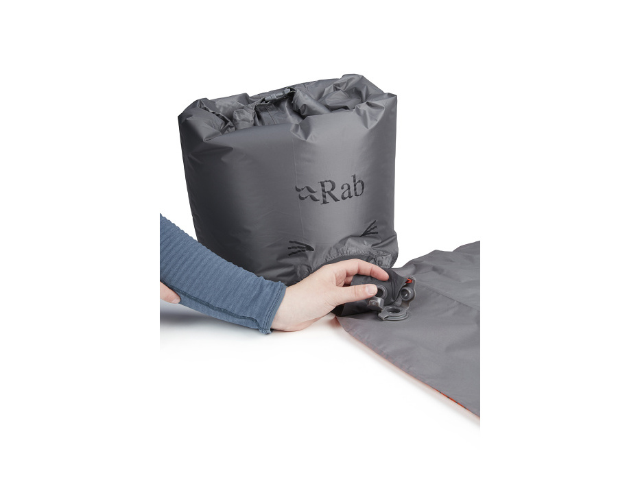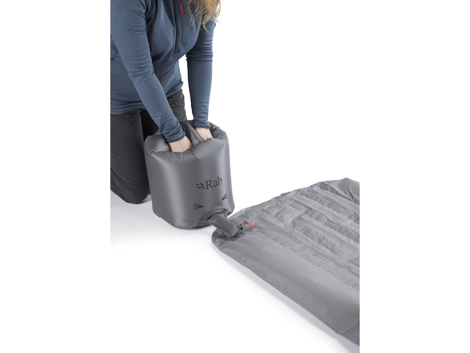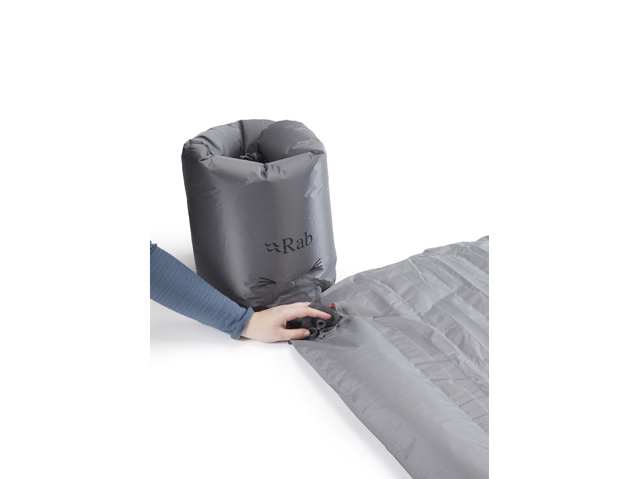 Den byl dlouhý. Ale jaká bude noc? Snad ne podobná. I když hory mohou připravit ledasco. Každopádně v Rabu mají se spaním venku desítky let zkušeností, a tak i tato nafukovací karimatka přispěje k nerušenému spánku. Ztrátám tepla, které vznikají prouděním, zabrání syntetická izolace zakomponovaná ve vnitřní struktuře. „Vycestování“ z karimatky – kdyby tvým tělem v noci třeba zmítaly bouřlivé sny – zabrání rozměrné vnější komory. A sbalitelná pumpa ti pomůže s nafukováním v řídkém vzduchu, kde je každý doušek kyslíku vzácný.